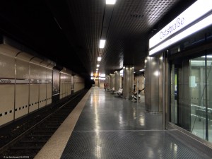 die Niederflurbahnsteige in Düsseldorf sind ja immer so eine Besonderheit. Mal verläuft ein Abzweigendes Gleis durch den Bahnsteig. Mal ist er in zig Abschnitte eingeteilt wegen Einfahrten wie im Bild zu sehen. Karriert ist der offizielle Bahnsteig, die Einfahrten zu den Häusern sind in grau gehalten.