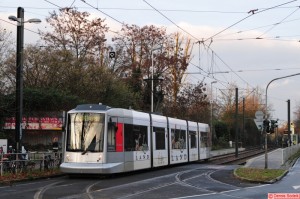 hat eben die Endhaltestelle verlassen und ist auf dem Weg nach Neuss.