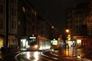 Wagen 2202 (links) und ein unbekannter NF8 begegneten sich hier an der Haltestelle Fürstenplatz.