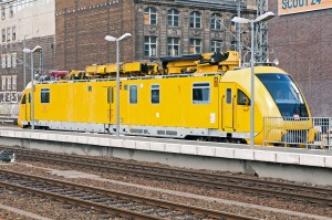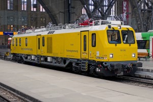 Vorhin stand unter anderem dieses Schienenschleiffahrzeug in Köln-Mülheim. |