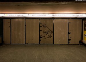 Wenige Meter vom Nordwestausgang befindet sich ein unterirdischer Zugang zum Bierpinsel, der aber, wenn man die Schriftart betrachtet, höchstens bis in die 80er in Betrieb gewesen sein kann - wenn er es überhaupt jemals war. Dass er existiert, ist nicht verwunderlich, wurden doch Turm und Bahnhof als ein einziges Bauwerk erstellt. |