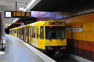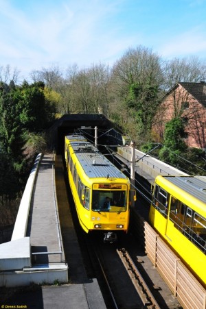 Nahezu plausibeles Wuschfoto des Projektes Stadtbahn Rhein-Ruhr aus den 60er/70er-Jahren. Regelspurige Hochflurstadtbahn, Tunnelstrecke und Cityexpress-Farben.