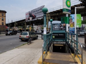 Das Südende der Haltestelle, der Blick geht Richtung Flushing Avenue. Auch hier überall Wasser, Rost und abfallende Farbe. Was da rechts in dem blauen Häuschen gebaut wird, ist unbekannt - vielleicht auch gar nichts. |
