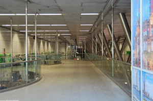 Hier sieht man deutlich das Gefälle Richtung Leuvehaven. Die Wand zwischen den Gleisen ist die originale Tunnelwand, die aber verputzt und perforiert wurde. |