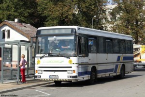 Eine Fahrende Gartenhütte vor typisch polnischen Plattenbauten. |