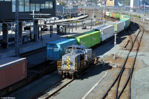 Die kleine 2-achsige Rangierlok ist grade in Trondheim bei der Arbeit.