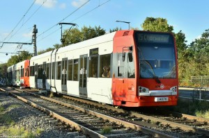 4070 wurde die Ganzreklame "City Outlet Bad Münstereifel" entfernt. Hier zu sehen wieder im aktuellen KVB-Farbschema in Merkenich am 03.09.2019. |