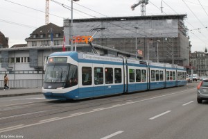 Die Cobras für die VBZ waren eine Sonderanfertigung. 37m lang, 2,4m breit und 1000mm Spurweite, ein solches Tram war Ende der 90er Jahre nicht auf dem Markt erhältlich. Mit mehreren Lieferanten wurde daher die Cobra entwickelt. Mit dem Umbruch in der Eisenbahnbau Branche wurde das Projekt massiv verzögert. Hauptlieferant SWP (Schindler Waggon Pratteln), der in Bombardier Transportation AG aufging, war für die mechanischen Bauteile verantwortlich. Mit Bombardier mussten aber erstmal neue Verträge ausgehandelt werden. Dabei beharrte die VBZ darauf, dass 6 Prototypen gebaut werden. Die hier zu sehende erste Cobra wurde dann im Mai 2001 abgelifert und intensiv erprobt. Allerdings ist von dieser Ur-Cobra nicht mehr viel vorhanden, im Februar 2008 wurden die Prototypen ausser Betrieb genommen, komplett zerlegt und anschliessend neu aufgebaut, so dass sie grösstenteils den Serien-Cobras entsprachen. |