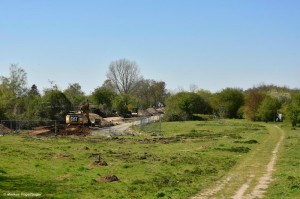 Blick auf die zukünftige Trasse der Zulaufstrecke der neuen Abstellanlage Weidenpesch von der Neusser Straße aus gesehen Richtung Simonskaul am 06.04.2020. |