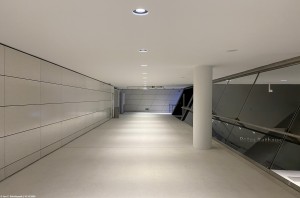 In der Verteilerebene gibt es auf beiden Seiten ein Panoramafenster zu den Bahnsteigen. Leider nicht ganz blendfrei. |