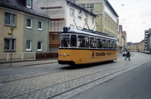 GrTw 2 + Bw 25 an der Haltestelle Blücherstraße - auf dem Endstück zwischen Westplatz und Söflingen. Seit Stillegung der Linie 4 im Jahre 1964 ist die Linie 1 zwischen Söflingen und Donauhalle mit 5,5 km Linienlänge die letzte verblieben Straßenbahnstrecke in Ulm. Erweiterungen sind zwar ständig in Planung, werden von der Politik aber immer wieder zerredet. |