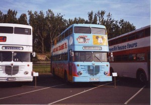 ebenfalls als Hotelbus zweckentfremdet wurde der ehemalige BVG-Doppeldecker 1443 (D2U 61). Er war im September 2003 nur mit Überführungskennzeichen zur Fahrzeugausstellung gelangt. |