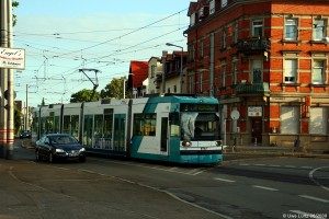 Die erste Variobahn für die Verkehrsbetriebe im Rhein-Neckar-Kreis zwischen Wallstadt und Heddesheim. |