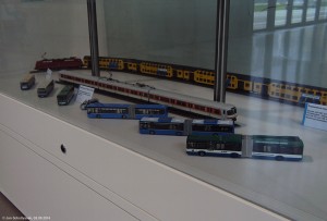 Am Rande der Ausstellungshalle gibt es eine Vitrine, in der mit 1:87-Modellen die Geschichte des Münchner Nahverkehrs dargestellt wird - dazu gehört auch die erste S-Bahn-Lackierung. (Orange gefällt mir besser...) |