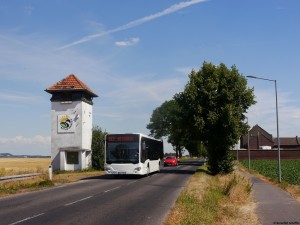 Die Linie 922 befährt zwischen Bergheim-Thorr und Elsdorf-Widdendorf diese kleine Straße. In Abständen von wenigen hundert Metern gibt es Begegnungsmöglichkeiten für Busse und Autos. |